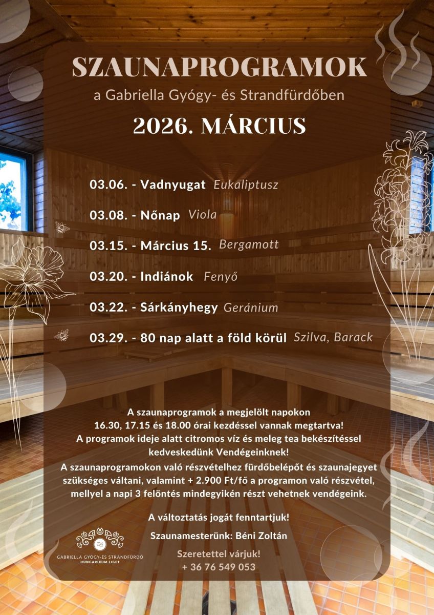 2026. márciusi szaunaprogramok