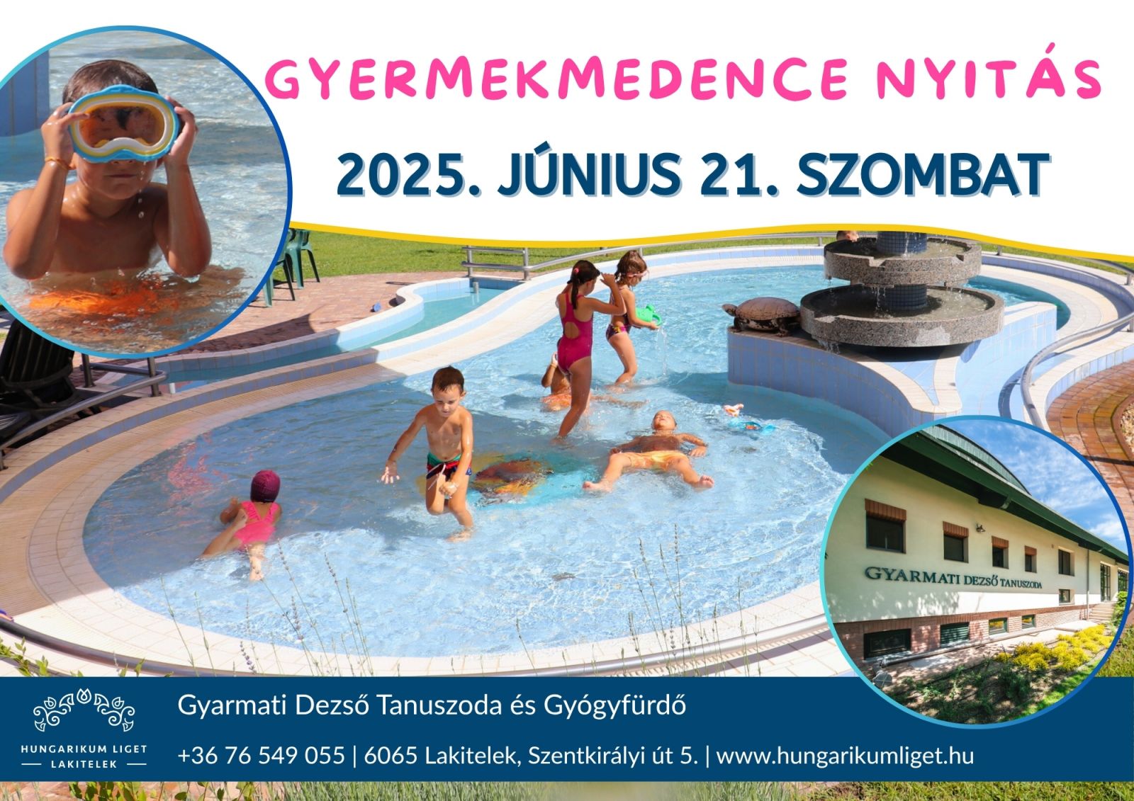 Tájékoztatjuk Önöket, hogy a Gyarmati Dezső Tanuszoda és Gyógyfürdő gyermekmedencéjének megnyitása 2025. június 28. szombat 10 órakor lesz.