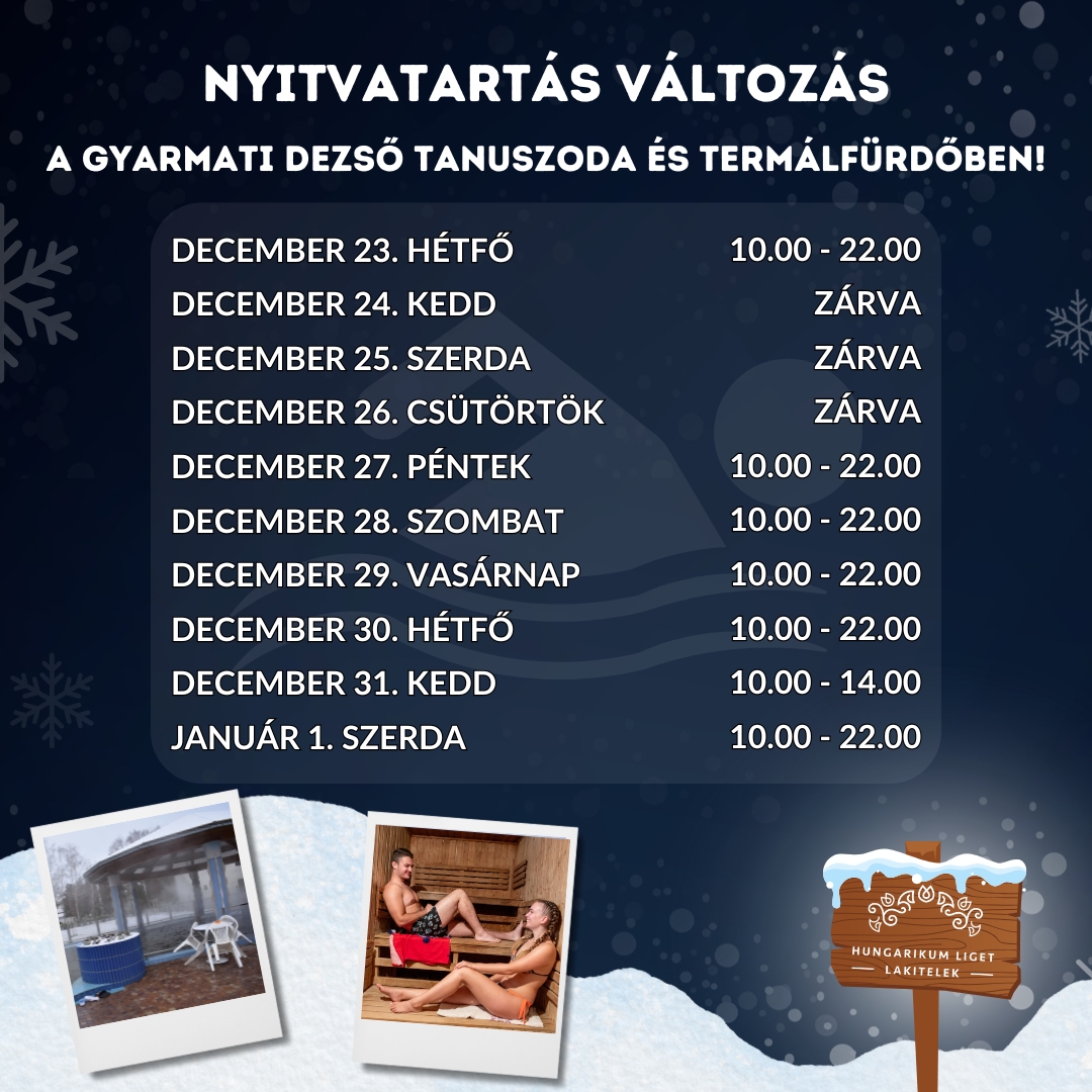 Különleges téli szüneti nyitvatartással várjuk, hogy még több időt tölthessen el a pihenés jegyében.