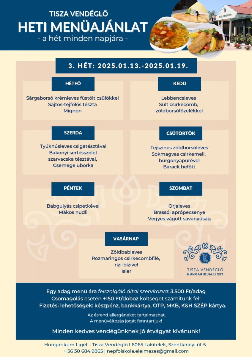 Tisza Vendéglő heti menü ajánlata 2025.01.13.-2025.01.19.