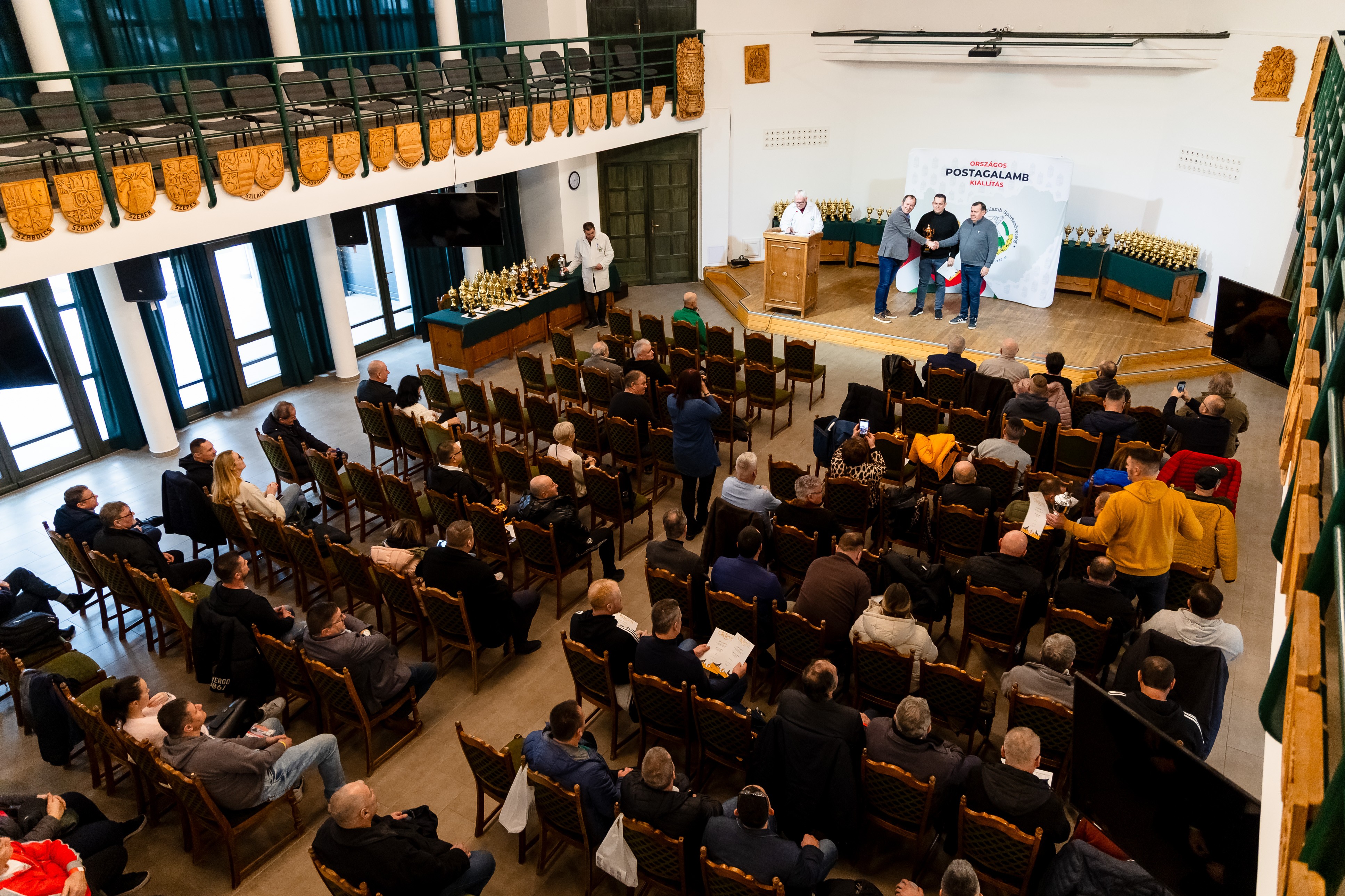 Az összesen 820 postagalambot felvonultató rendezvényen több tucat díj talált gazdára: külön elismeréseket adnak át hímek, tojók és fiatal galambok számára, továbbá kiosztották az életmű jellegű elismeréseket is.