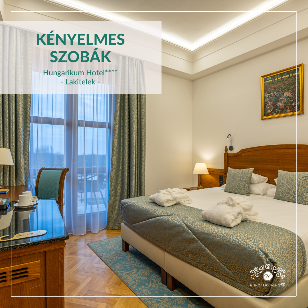 - Elhelyezés a Hungarikum Hotel**** kiválasztott szobatípusában (minden szobatípus a földszinten terasszal, az 1. emeleten erkéllyel rendelkezik)