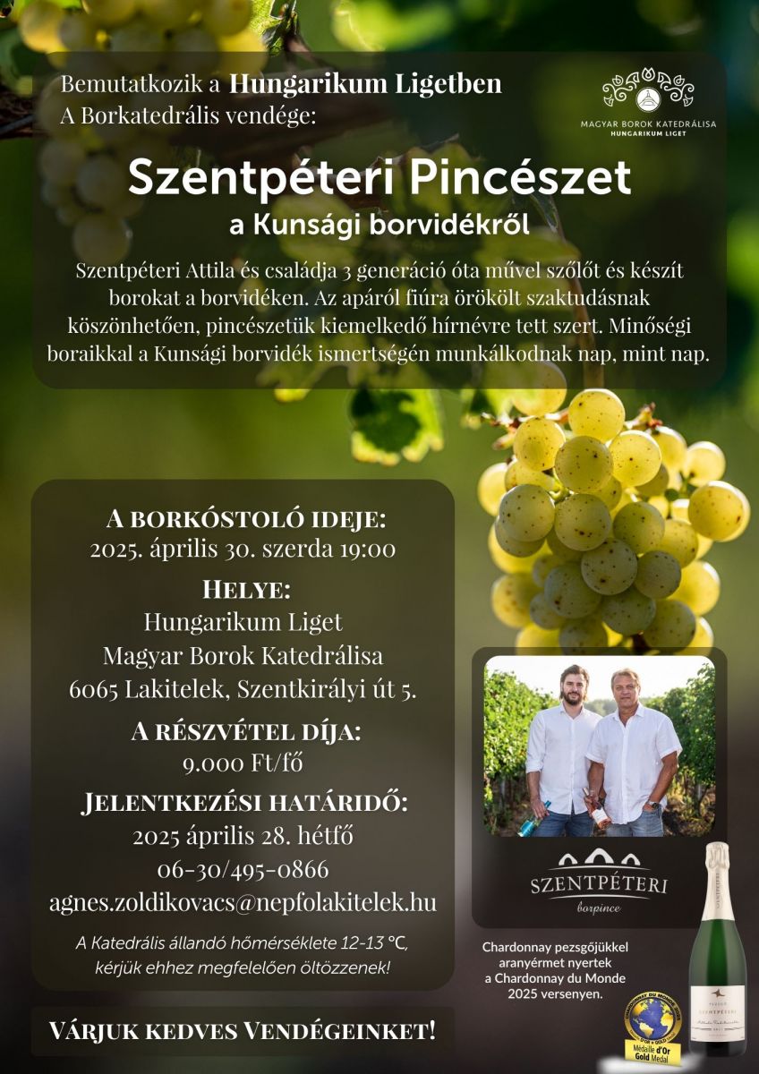Szeretettel várjuk az érdeklődőket április 30-án a Szentpéteri Pincészet borkóstolójára.
