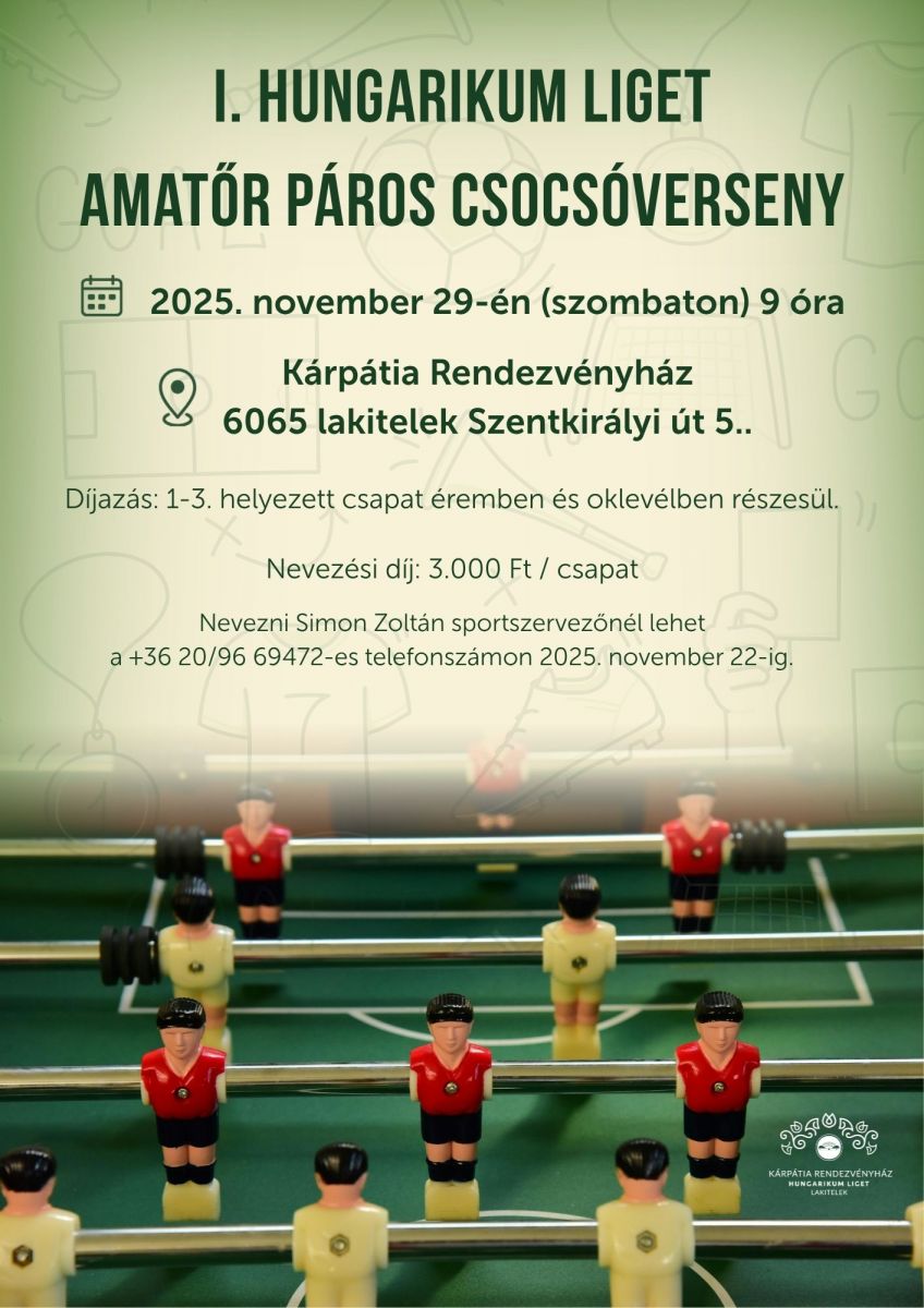 Várjuk azokat a csapatokat, akik szeretnék megmérettetni magukat egy barátságos, jó hangulatú csocsóversenyen.