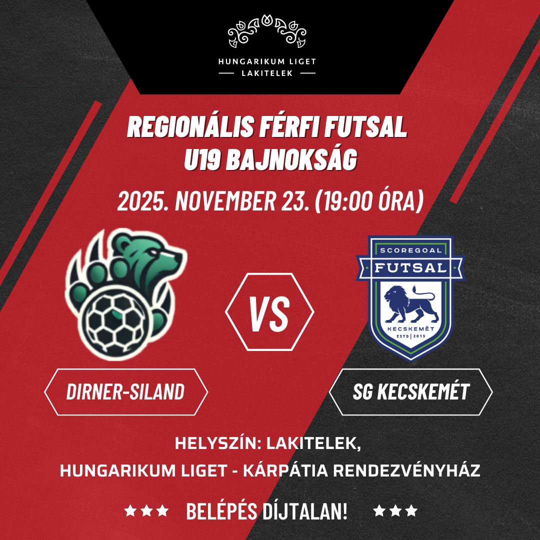 Szeretettel várunk minden sportbarátot VASÁRNAP ESTE 19:00 órai kezdéssel, a Dirner-Siland Vs. SG Kecskemét futsal csapatok mérkőzésére.