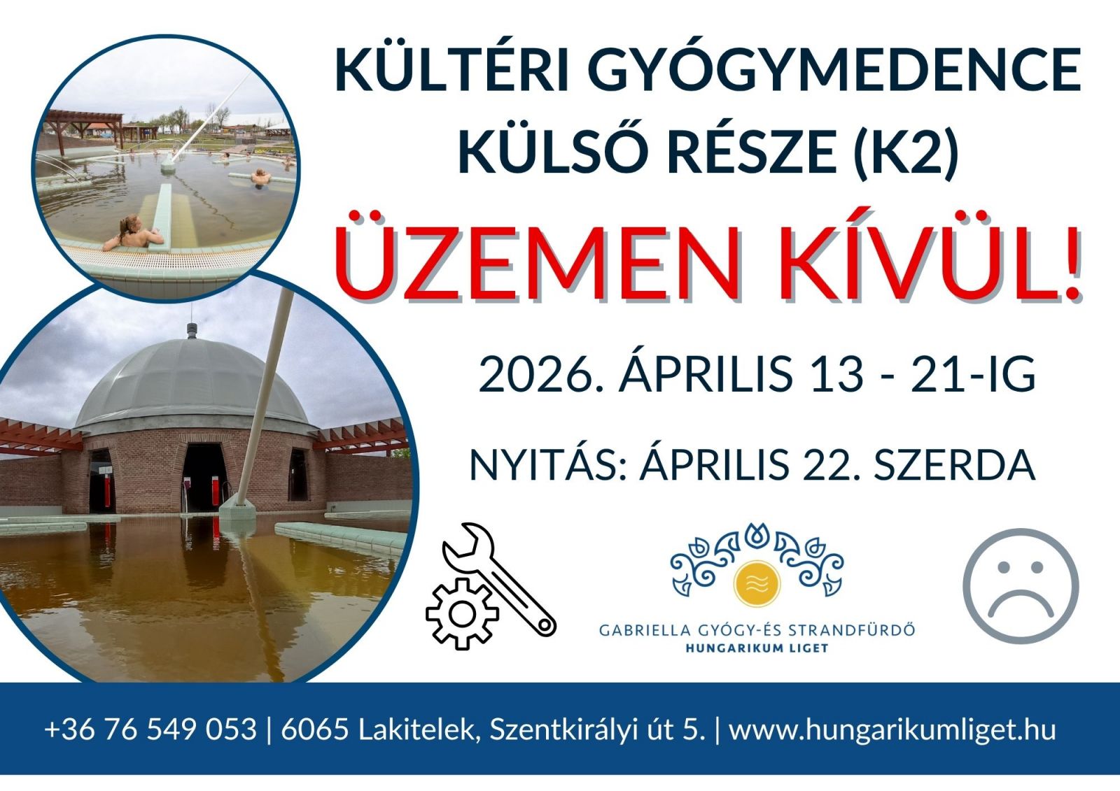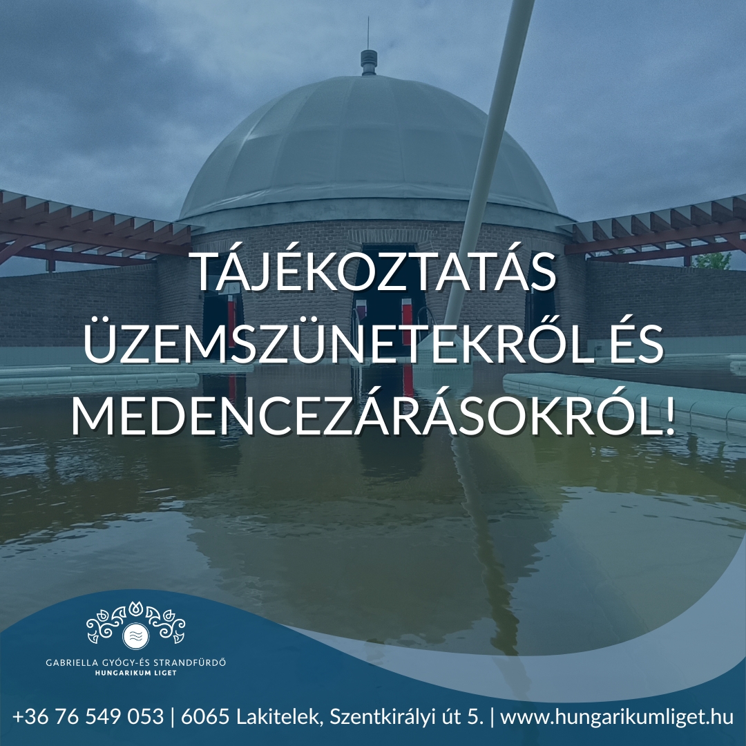 A termálvizes gyógymedencék rendszeres fertőtlenítése miatt az alábbi időpontokban zárvatartásra kell számítani: