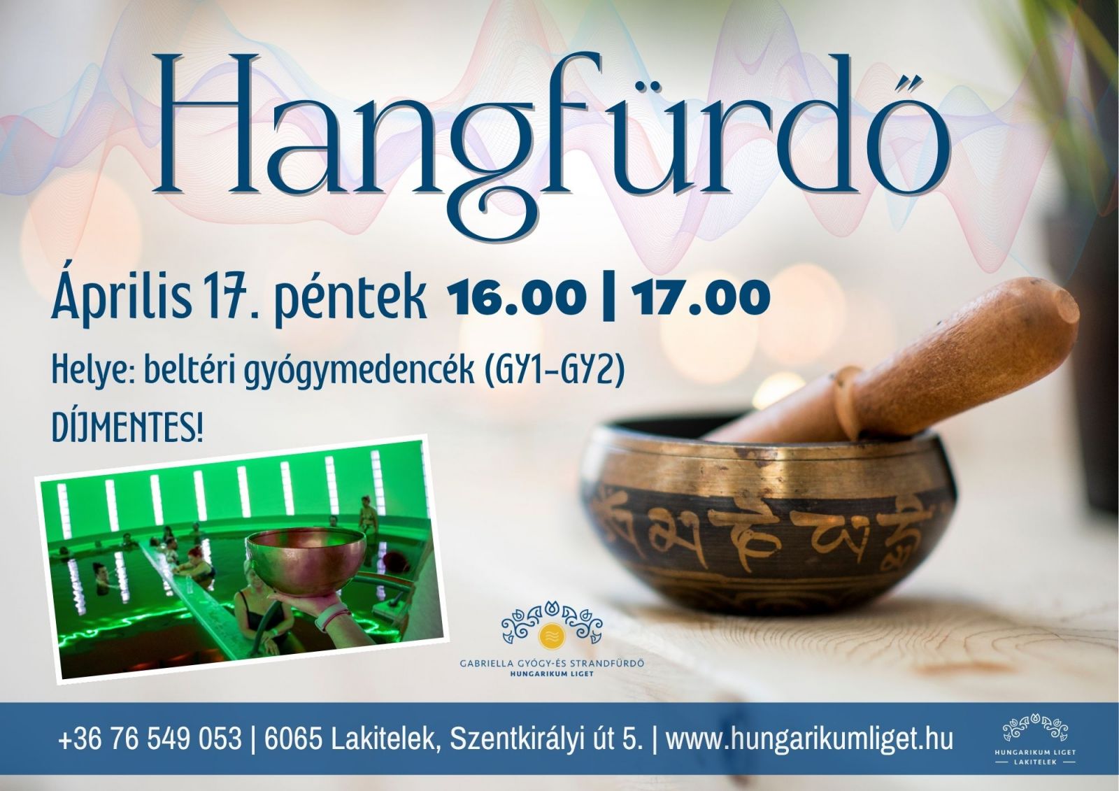 Április 17-én, pénteken 16 és 17 órakor újra hangfürdő a Gabriella Gyógy- és Strandfürdőben.